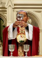 ...Who, as the Lamb of God in each Mass today, is offered again to the Father in an unbloody manner by priests throughout the world.  The reality is Christ's actual presence - body and blood, soul and divinity - in the consecrated bread and wine.