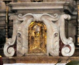 The Priest Approaches and Kisses the Altar:  The altar is a symbol of Christ.  In it are cut five crosses to recall the five wounds of Christ.  The altar also represents the Church and has embedded in it the relics of her saints.  The priest comes to the altar to celebrate the Sacrifice in the Church's name.  Because of the glory surrounding the altar upon which the divine Sacrifice will be made, the kiss of the priest unites the Church to Christ, its Redeemer.